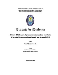 | dc.title | Software JSEditor para el procesamiento de metadatos en artículos de la revista Biotecnología Vegetal para la base de datos SciELO | en_US |