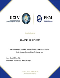 | dc.description.abstract | La presente investigación consiste en la implementación de actividades lúdicas mediante juegos didácticos en clases de Matemática; con el fin de contribuir al aprendizaje de los estudiantes de séptimo grado de la secundaria básica “Capitán Roberto Rodríguez”. En el proceso investigativo se aplicaron diferentes métodos como: la observación a clases, la revisión de documentos, la encuesta a alumnos y profesores, para determinar el estado actual del problema relacionado con el objeto de estudio. Estos revelaron las dificultades que presentan los estudiantes de séptimo grado en el aprendizaje de la Matemática y la escasa solidez en la asimilación de sus contenidos. Con el fin de transformar esta situación, se realizó una propuesta de 9 juegos didácticos para implementar la actividad lúdica en las clases de Matemáticas en la secundaria básica. Esta fue sometida a criterio de especialistas los cuales la consideraron adecuada, pertinente, novedosa y con la calidad necesaria para atenuar la situación dada. Se logra implementar la actividad lúdica en una clase de repaso dándole seguimiento al diagnóstico y para contribuir al aprendizaje de los estudiantes en elementos del conocimiento que continúan afectados después de realizado el primer trabajo de control. Esta clase les resultó a los estudiantes muy atractiva e interesante porque aprendieron de forma divertida. Luego de aplicar la prueba pedagógica final donde se evaluaron los mismos elementos del conocimiento que se habían repasado mediante el juego se obtuvieron notables avances en su aprendizaje. | en_US |